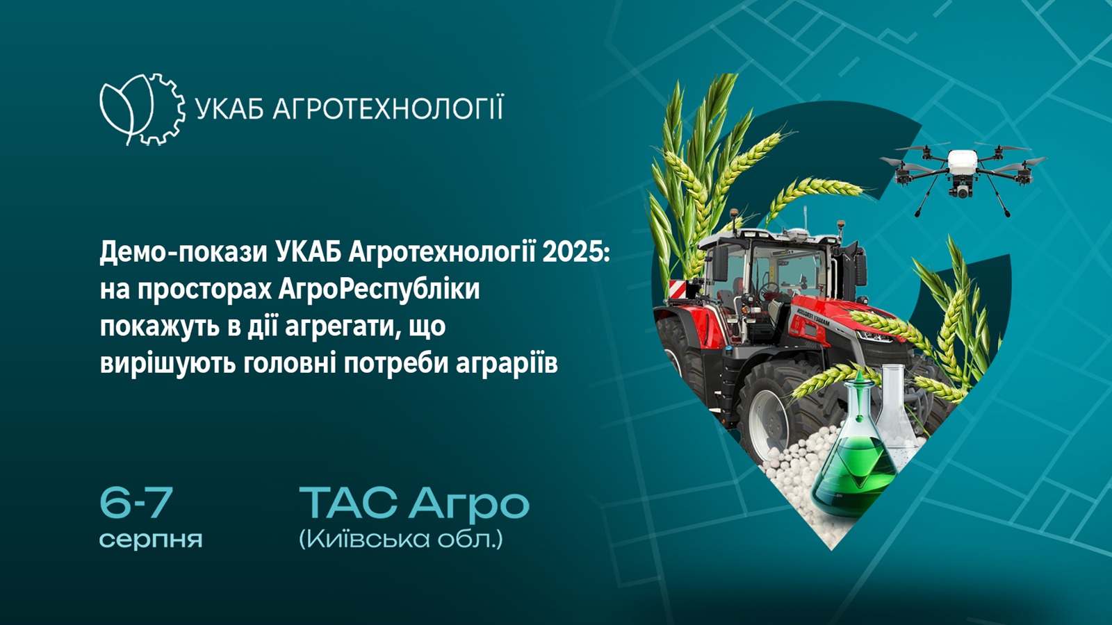 Нагадаємо, «УКАБ Агротехнології 2025» відбудуться 6-7 серпня 2025 року на потужностях «ТАС Агро» в Київській області (Обухівський р-н). Це унікальна нагода для аграріїв побачити передову техніку в дії, порівняти її можливості та поспілкуватися безпосередньо з представниками провідних компаній. Вхід на подію безплатний, реєстрація доступна за посиланням: https://cutt.ly/2rvIwySW.